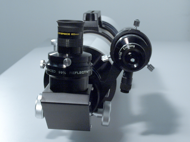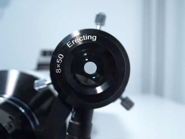 The viewfinder is 8x50mm, focusable, and is mounted on the edge of the focuser. Freely pivotable, it enables a good view from all angles.