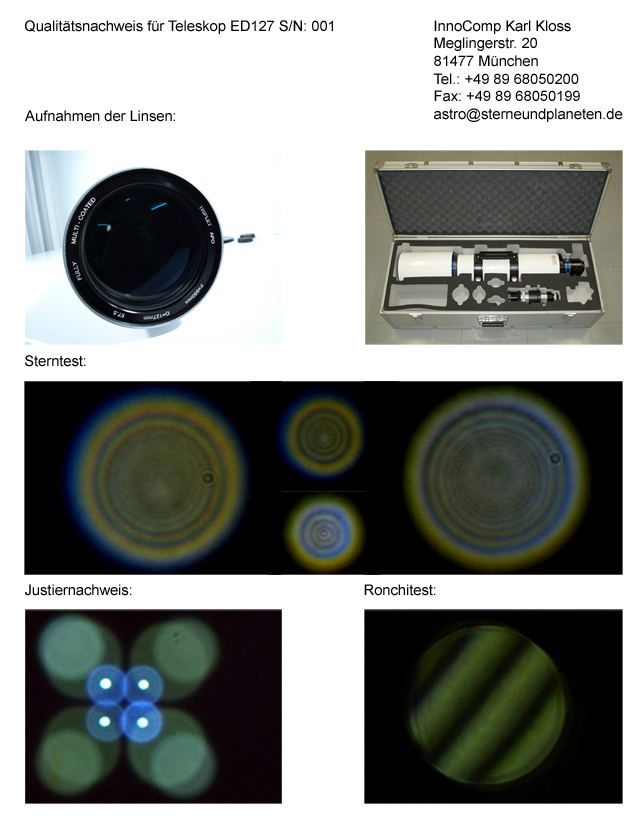 (test record incl. startest, ronchi, collimation, with individual serialnumber)!