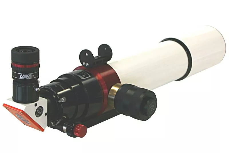 Komplettes H-Alpha Sonnen-Teleskop mit 80mm Öffnung, einer Halbwertsbreite von <0,7 Angtröm, innovativem Luftdruck-Tuning-System, B1200 Blocking-Filter und Feather-Touch Okularauszug.Das LS80THa/B1200FTPT ist ein komplettes Teleskop zur Beobachtung der Sonne im H-Alpha Licht, ein präziser ED-Refraktor mit 80mm freier Öffnung (keine zentrale Obstruktion) und 560mm Brennweite. Ein interner Etalon-Filter erreicht mit dem innovativem Luftdruck-Tuning-System „Pressure-Tuner“ eine Halbwertsbreite von <0,7 Angström. Mit diesem „Pressure-Tuner“ lässt sich der Etalon wesentlich präziser einstellen als mit herkömmlichen Systemen. Das „Pressure-Tuner“-System gleicht Höhen- und Luftdruckschwankungen aus und sorgt immer für optimale Performance. Der Etalon ist sicher im Inneren des Teleskops installiert.