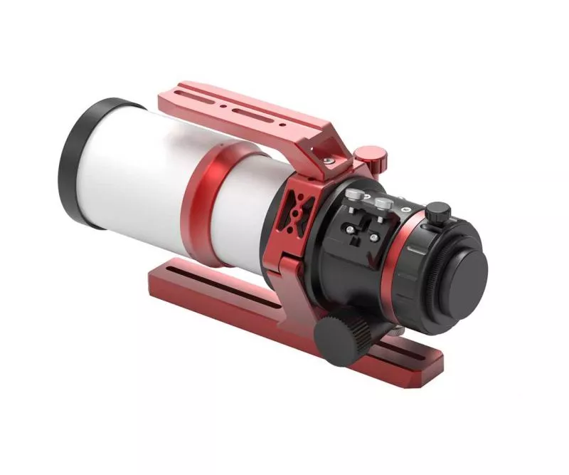 Der TS 62 mm Quintuplet ist ein ideales Reiseteleskop für Astrofotografie. Der Apochromat bietet ein voll ausgeleuchtetes und korrigiertes Feld mit 40 mm Durchmesser. Er ist für Kameras mit APS-C-Sensoren geeignet, mit geeigneten Flats können auch Vollformatsensoren verwendet werden. Durch das FPL53-Tripletobjektiv wird die chromatische Aberration korrigiert. Die Abbildung ist auf der Achse und im Feld frei von Farbfehlern.