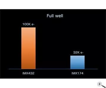 ♦ Sony IMX432 Mono Sensor mit 17,6 mm Diagonale (14,1 x 9,9 mm)