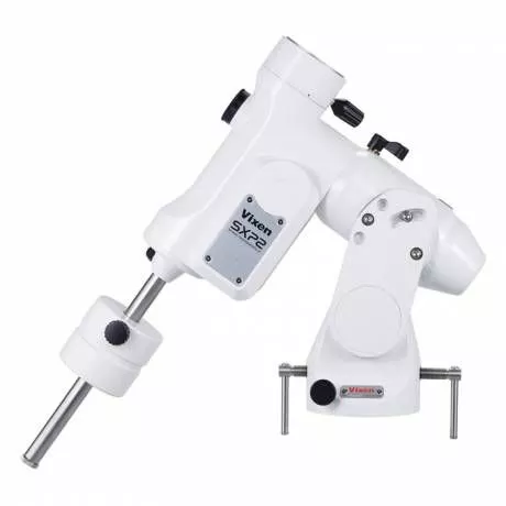Stabiler Polhöhen Block zur AusrichtungDie SXP2 Montierung verwendet die gleiche Gabel wie die schwerere AXJ Montierung. Durch diese neue Konstruktion ist eine schnelle und stabile Breitengrad Einstellung möglich.
