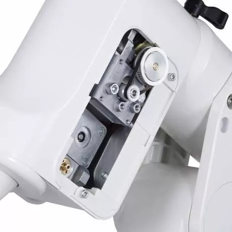 Das Riemenantriebssystem erzielt minimales Spiel und wenig GeräuscheIn dem herkömmlichen Motorantriebssystemen von äquatorialen Montierungen wurden Zahnräder genutzt und vom Motor angetrieben.
