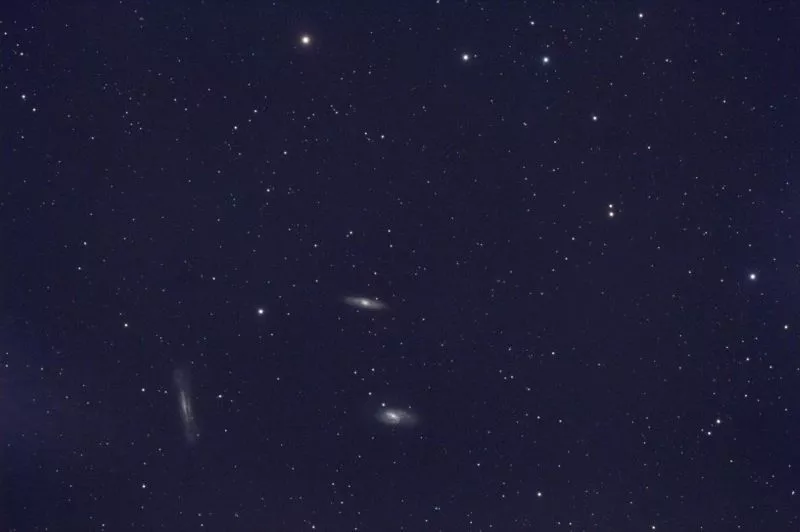 im Anhang meine erste Aufnahme. Das Leo-Triplett mit 6x300 Sekunden bei ISO 800, keine Korrekturbilder. Leider nicht ganz zentriert und in Sachen Bildbearbeitung ist auch noch Luft nach oben. Aber immerhin ein Anfang.