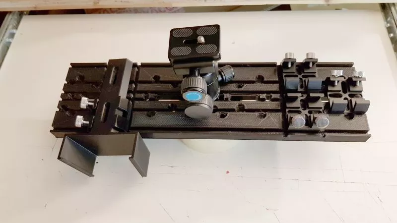 Wir haben eine Montageplatte zur Montage an die Rohrschellen entwickelt auf der unterschiedliche Sachen befestigt werden können. Entweder über Schrauben oder Sucherschuhe. Die Sucherschuhe sind durch Rillen gegen Verdrehen geschützt. Können von oben oder unten festgeschraubt werden. Die Maße der Aufnahmebereiche und Aussparungen sind genormt so das bestimmte TS Sucherschuhe oder von uns gedruckte Schuhe passen. Es wird Halterungen für MGEN, verschiedene Handcontroller, Steuereinheiten wie ASIAIR oder NUC PCs, verstellbare Leitrohrhalterungen für GP-Prismenschienen ohne Leitrohrschellen zu benötigen, und vieles Mehr von uns geben.
