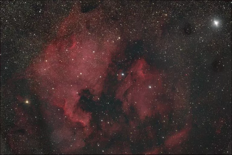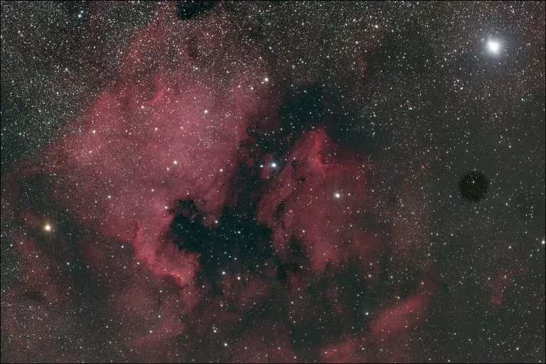 Die Filterdicke muss noch mit betrachtet werden. Für den IDAS HEUIIB II Ha ergibt sich für mein System (Kamera plus Teleskop) ein Abstand von 57,8mm. Für den Optolong L-eXtreme ein Abstand von 58,1mm. Anbei eine Aufnahme mit dem L-eXtreme aus der vergangenen Woche in Hubble-Palette mit voller Korrektur im ganzen Feld (Vollformat).