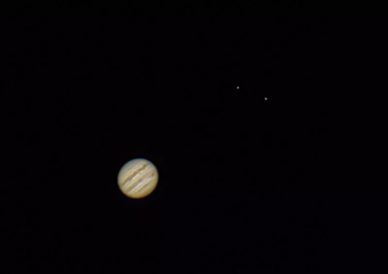 Dennoch macht mir speziell das Fotografieren sehr viel Spaß, auch wenn mir natürlich noch das Können und die Erfahrung fehlen. Ich arbeite mich sehr gemächlich in Bildverarbeitungssoftware wie Regstiax ein, was mir beim Fotografieren der Jupiter-Opposition am 09.05. schon ein Bild beschert hat, über dass ich mich doch sehr gefreut habe. So war es mir mit Registax recht problemlos möglich, Europa und Ganymed einzufangen, sowie den großen roten Fleck und den Schatten von Io auf Jupiter.