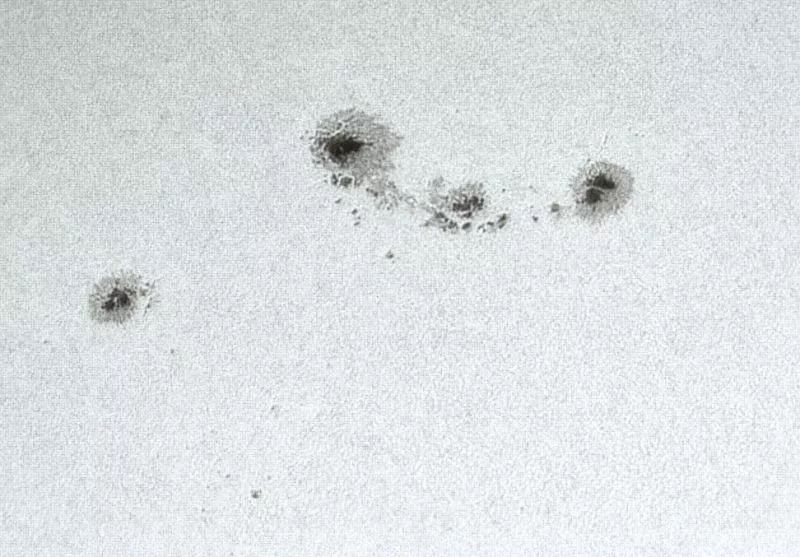 Was soll ich sagen: Das Gerät überrascht bei den wirklich schlechten Sichtbedingungen sehr! Wegen der relativ kleinen Öffnung nicht so anfällig für Turbulenzen ist es sowieso bei ungünstigem Seeing gegenüber größeren Geräten im Vorteil. Dass es aber solch detaillierten Bilder der Sonnenflecken macht, habe ich nicht erwartet. Man schaue sich die Umbra, Penumbra und die Details darin gut an. Solch eine Schärfe- und Kontrastleistung ist (zumindest für mich) erstaunlich gut und sicher überdurchschnittlich für solch ein kleines Teleskop. Ich war mehr als positiv überrascht.