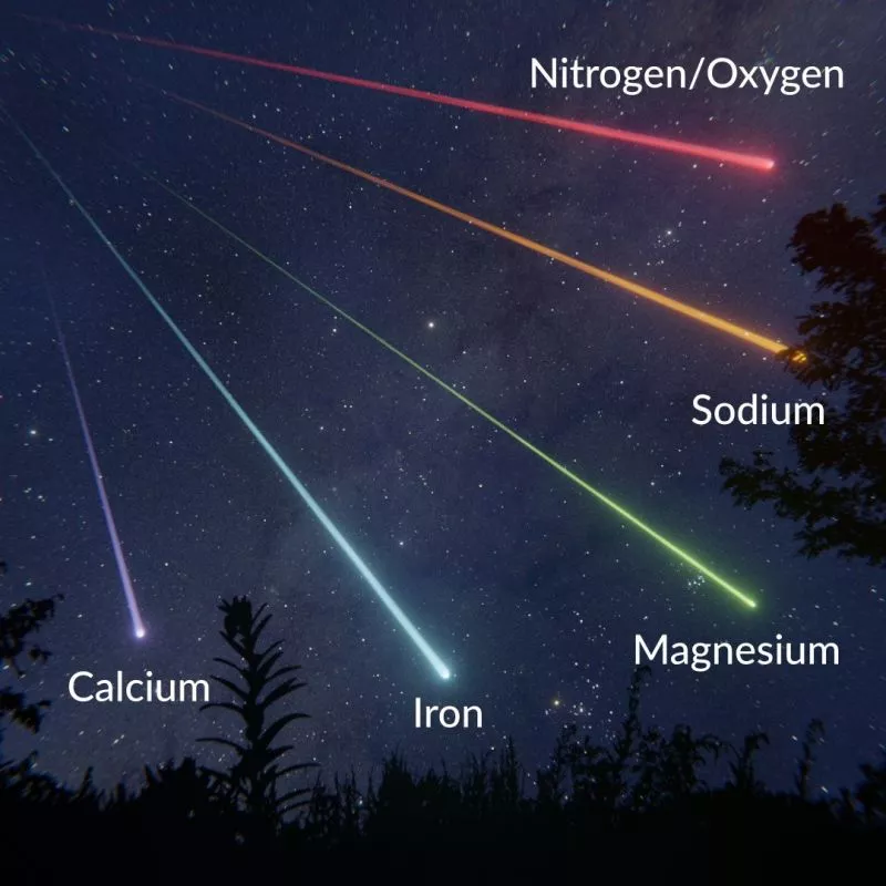Verschiedene Chemikalien in den Meteoriten erzeugen unterschiedliche Farben, wenn sie beim Eintritt in die Erdatmosphäre verglühen.