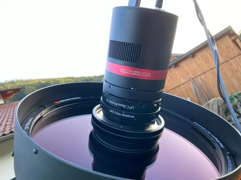 Momentan bin ich dem C11 und einem Rasa11 auf einer Eq8 am werken. Als Kamera dient eine QHY367cPro, eine Vollformat Cmos Kamera und so ziemlich das geilste Ding, das ich je in der Hand hatte!!! Aber mal sehen, was die Zukunft bringt...