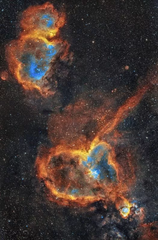 Der Herznebel ist ein Emissionsnebel mit offenem Sternhaufen im Inneren.