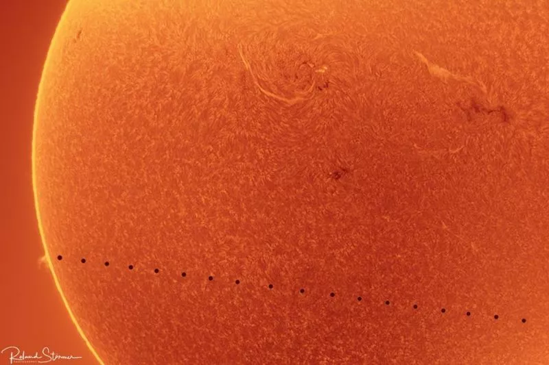 Hier ein sehr schönes Merkurtransit Bild von dem Astrofotografen Roland Störmer.Aufgenommen am 09.05.2016