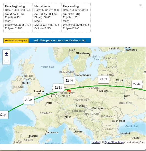 Der Beitrag ist in englisch,und die grünen punkte sind die satteliten die wir mit Langzeitbelichtung aufnehmen,und dir roten sind mit dem Auge sichtbar. Wie gesagt der stand der Sonne spielt eine grosse Rolle.