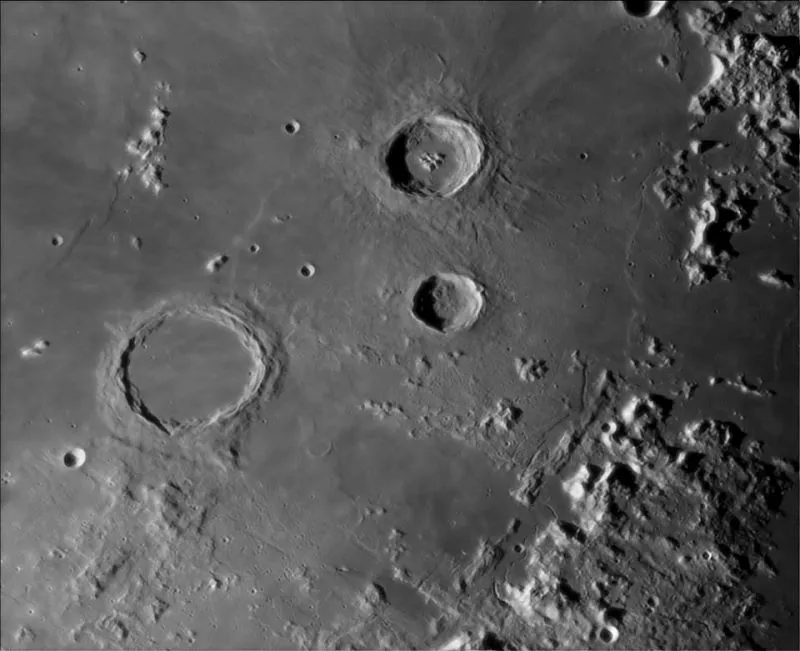 Zu den Bildern noch eine Anmerkung: Beide Geräte der Mondbilder habe ich wieder verkauft, nicht weil sie mir nicht gefallen hatte, sondern um Platz und Geld für etwas Neues zu bekommen. Besonders der 152mmf8 Achromat ist mit Grünfilter ein Tipp für Mondfotos, da braucht es dann bei Einfarbigkeit keine teuren Apos. Die Bilder sind bei für ostfriesische Verhältnisse sehr gutem Seeing gemacht, Theophilus war sogar LPOD am 29.09.2014, die Seite ist leider nicht mehr abrufbar.