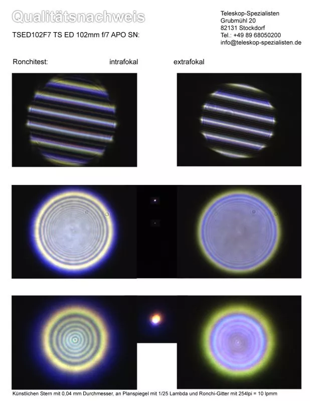 Ein Qualitätsnachweis / Testbericht mit Sterntest und Ronchi für TSED102F7 TS ED 102mm f/7 APO Refraktor Teleskop