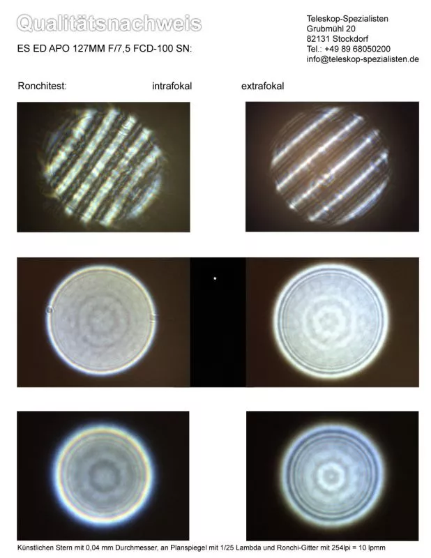 Ein Qualitätsnachweis / Testbericht mit Sterntest und Ronchi für einen EXPLORE SCIENTIFIC ED APO 127MM F/7,5 FCD-100 CF HEX Carbon