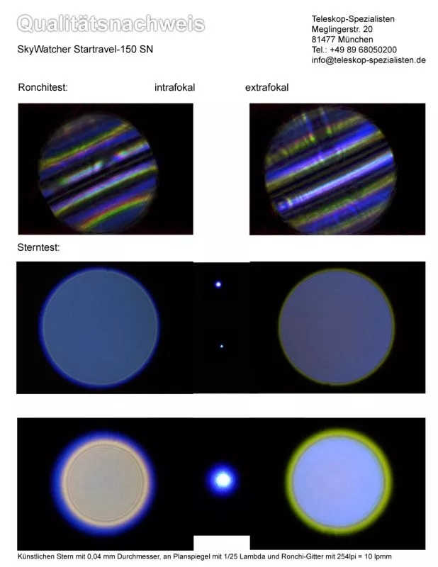 Ein Qualitätsnachweis / Testbericht mit Sterntest und Ronchi für einen SkyWatcher Startravel-150 Großfeldrefraktor 150/750mm f/5
