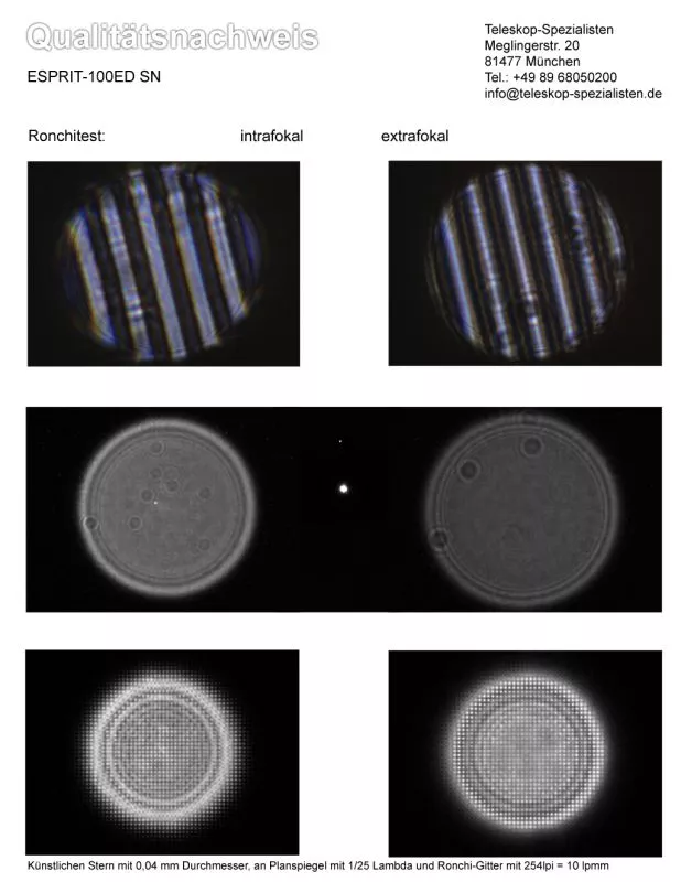 Ein Qualitätsnachweis / Testbericht mit Sterntest und Ronchi für einen Skywatcher Esprit-100ED Professional 100mm F/5,5 Super APO Triplet