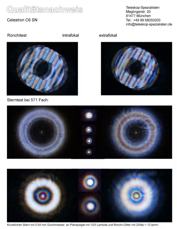 Ein Qualitätsnachweis mit Sterntest und Ronchi für einen Celestron C6 SC XLT - 150/1500mm Schmidt Cassegrain