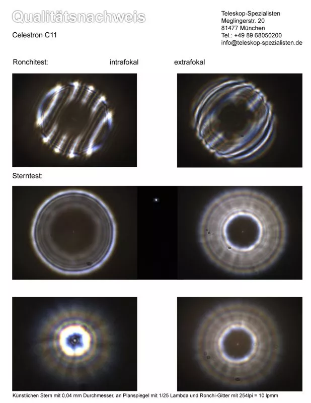 Ein Testbericht mit Sterntest und Ronchi für ein Celestron C11 Teleskop.