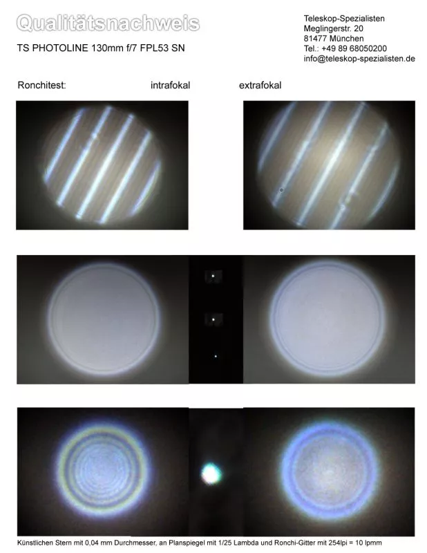Ein Testbericht mit Sterntest und Ronchi für einen APO130f7-P TS PHOTOLINE 130mm f/7 Triplet APO FPL53 2.5" RPA Auszug