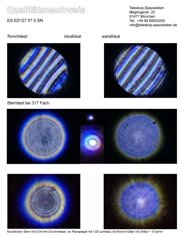Qualitätsnachweis / Testbericht mit Sterntest und Ronchi für einen Explore Scientific ED APO 127mm f/7,5 AluEssential