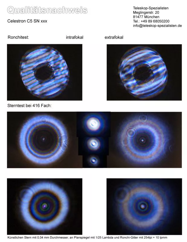 Ein Qualitätsnachweis mit Sterntest und Ronchi für ein Celestron C5.