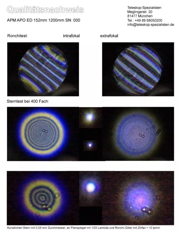 Ein Qualitätsnachweis mit Sterntest und Ronchi für einen APM Dublet ED APO 152mm f/7.9 - opt. Tubus mit 2,5" CNC Okularauszug