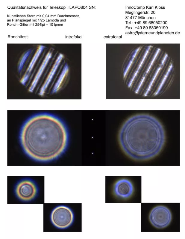 Ein Qualitätsnachweis mit Sterntest und Ronchi für einen TLAPO804 TS Photoline 80/480mm F/6 APO - FPL-53 Triplet.