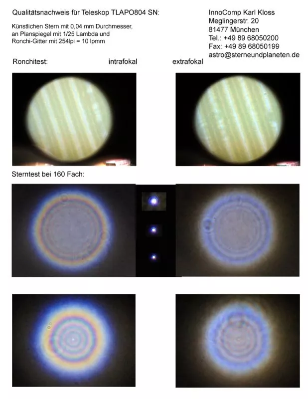 Ein Qualitätsnachweis mit Sterntest und Ronchi für einen TLAPO804 TS 80/480mm F/6 APO - FPL-53 Triplet.