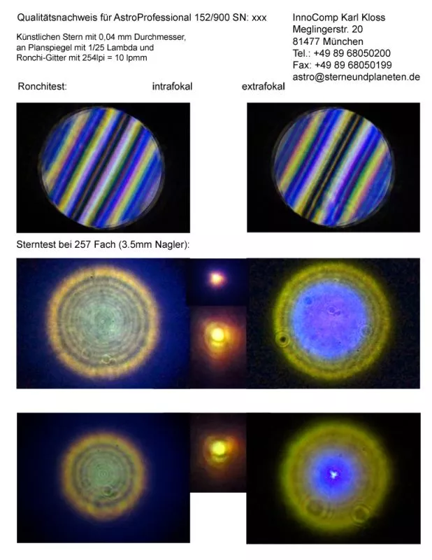 Ein Qualitätsnachweis mit Sterntest und Ronchi für einen Astro-Professional 152mm/900mm f/5,9 achromatischen Refraktor