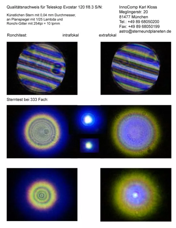 Ein Qualitätsnachweis mit Sterntest und Ronchi für einen Skywatcher Evostar 120 - 120/1000mm Refraktor.