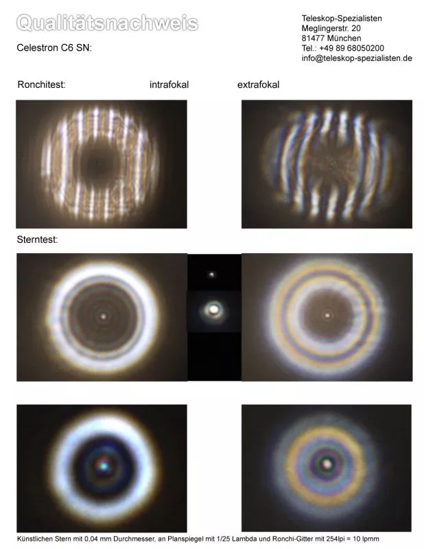 Ein Testbericht mit Sterntest und Ronchi für einen Celestron C6 SC XLT - 150/1500mm Schmidt Cassegrain :