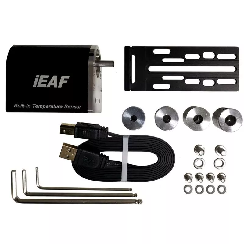 Der iOptron Electronic Automatic Focuser (iEAF) ist sowohl für Crayford- als auch für Rack-and-Pinion-Okularauszüge geeignet. Er wird über einen 5V USB-Anschluss mit Strom versorgt. Der Fokussierer ist ASCOM-kompatibel und funktioniert mit den meisten Planetariums- und Bildbearbeitungsprogrammen. Er kann auch manuell durch Drücken einer Taste eingestellt werden.