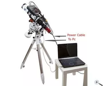 Keine Kabel stören die Bewegungen der Montierung und des Instruments, es gibt nur ein Versorgungskabel zum VARIUS, von dem dann kurze Kabel zu den Verbrauchern abzweigen.