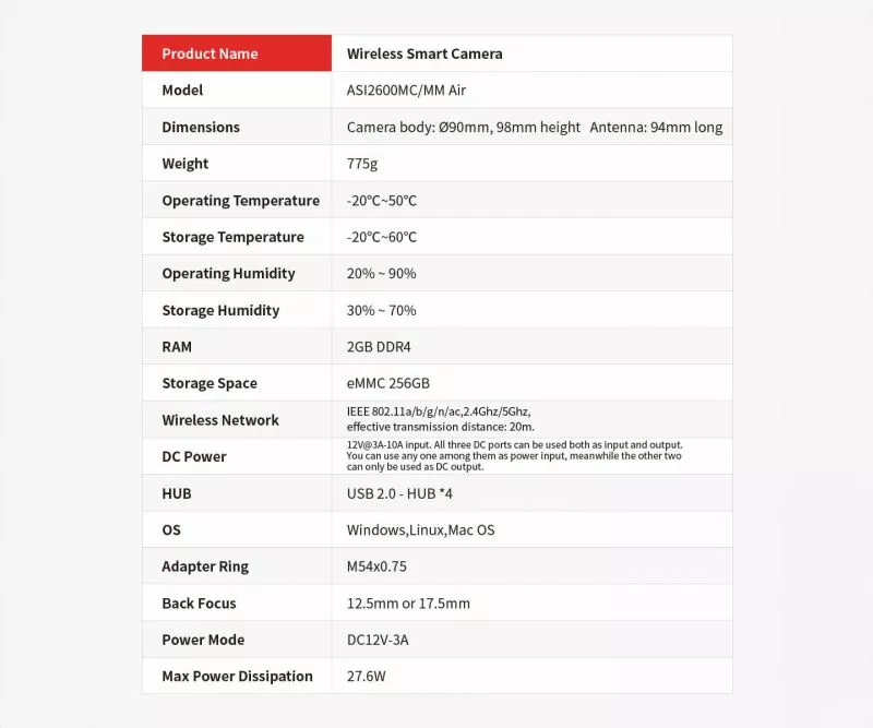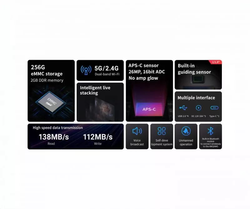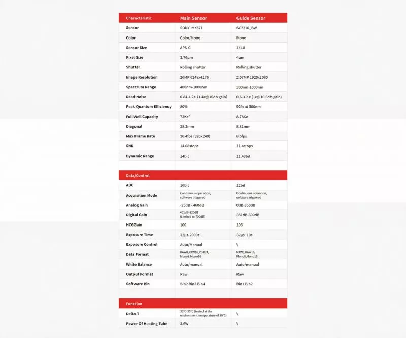 Imaging sensor: | Sony IMX571 (back-illuminated CMOS monochrome sensor) |