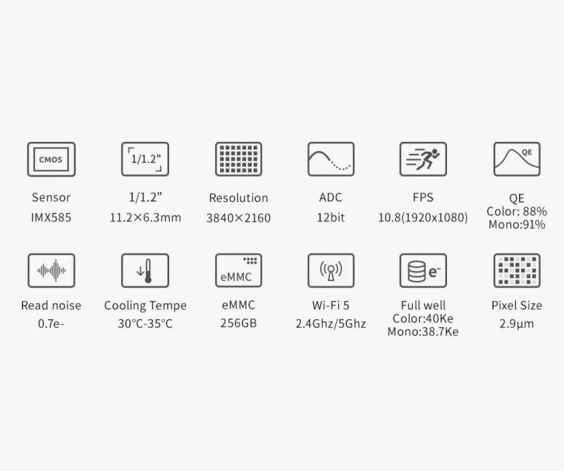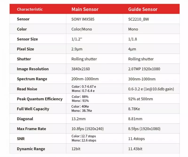 | Sensor: | Sony 1/1.2 inch CMOS IMX585AAMJ1 (monochrome) |