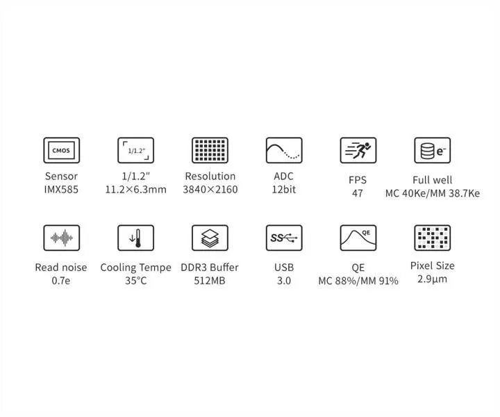 Sensor:Sony 1/1.2 inch CMOS IMX585 (mono)