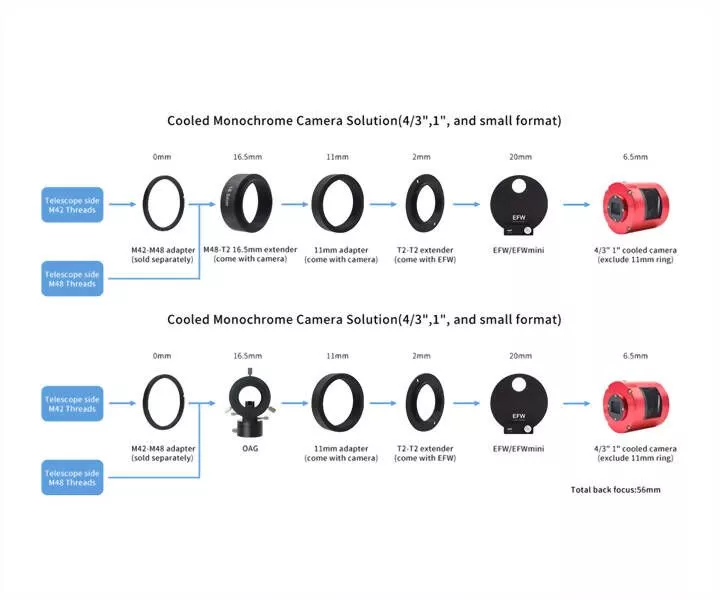 ZWO Mono Astro Camera ASI585MM Pro cooled, sensor D=12.84 mm, pixel 2.9 µm