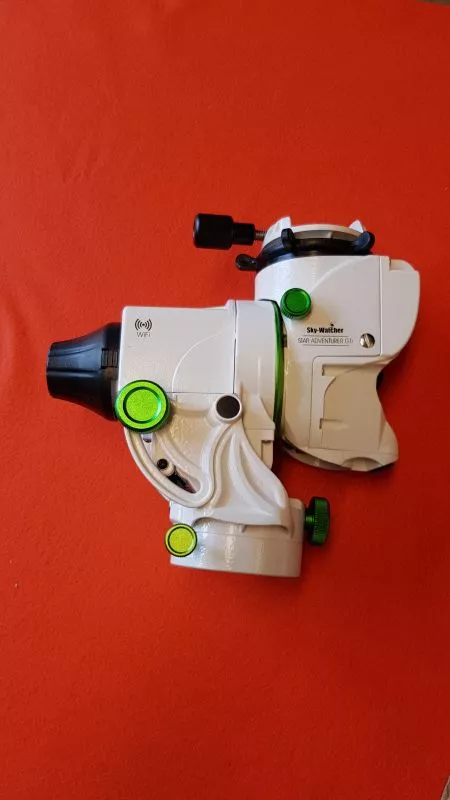 Die großartige, neue Star Adventurer GTi ist mit einem eingebauten, beleuchteten Polsucher für die präzise Einnordung ausgestattet. Er enthält ein USB Interface, Anschluß für Autoguider und kann optional auch über eine Handsteuerbox betrieben werden. Des weiteren ist eine Anschlußbuchse zur Auslösung einer DSLR Kamera vorhanden, die über die Sky-Watcher App SynScan Pro für iOS und Android programmiert werden kann. Zur Nutzung der Montierung nahe des Äquators kann die Gegengewichtsstange an einer zweiten Gewindebuchse angebracht werden. Über das eingebaute WiFi kann die Montierung vollständig über ein Smartphone oder Tablet mit Hilfe der SynScan App gesteuert werden.