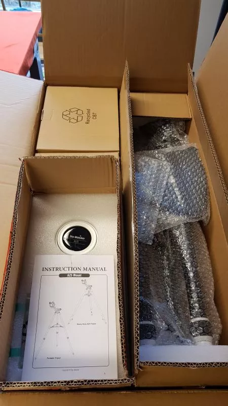 Die azimutale AZ5 Deluxe Montierung wurde aus solidem Aluminiumguss gefertigt und trägt kleinere Teleskope mit bis zu 5 kg Gewicht, die sich mit einer Vixen / Skywatcher Norm Schwalbenschwanzschiene einfach befestigen lassen. Sie können aber auch andere Geräte mit einem optional erhältlichen L-Halter verwenden. Die AZ5 wird mit einem Aluminiumstativ geliefert, das sich stufenlos in jeder Höhe arretieren lässt sowie einer kurzen Verlängerungssäule. Enthalten sind zusätzlich zwei biegsame Wellen zur Betätigung der Feinuntersetzungen. Sie können die Montierung aber auch per Hand in jeder Achse bewegen, für schnelles Schwenken in horizontaler und vertikaler Richtung.