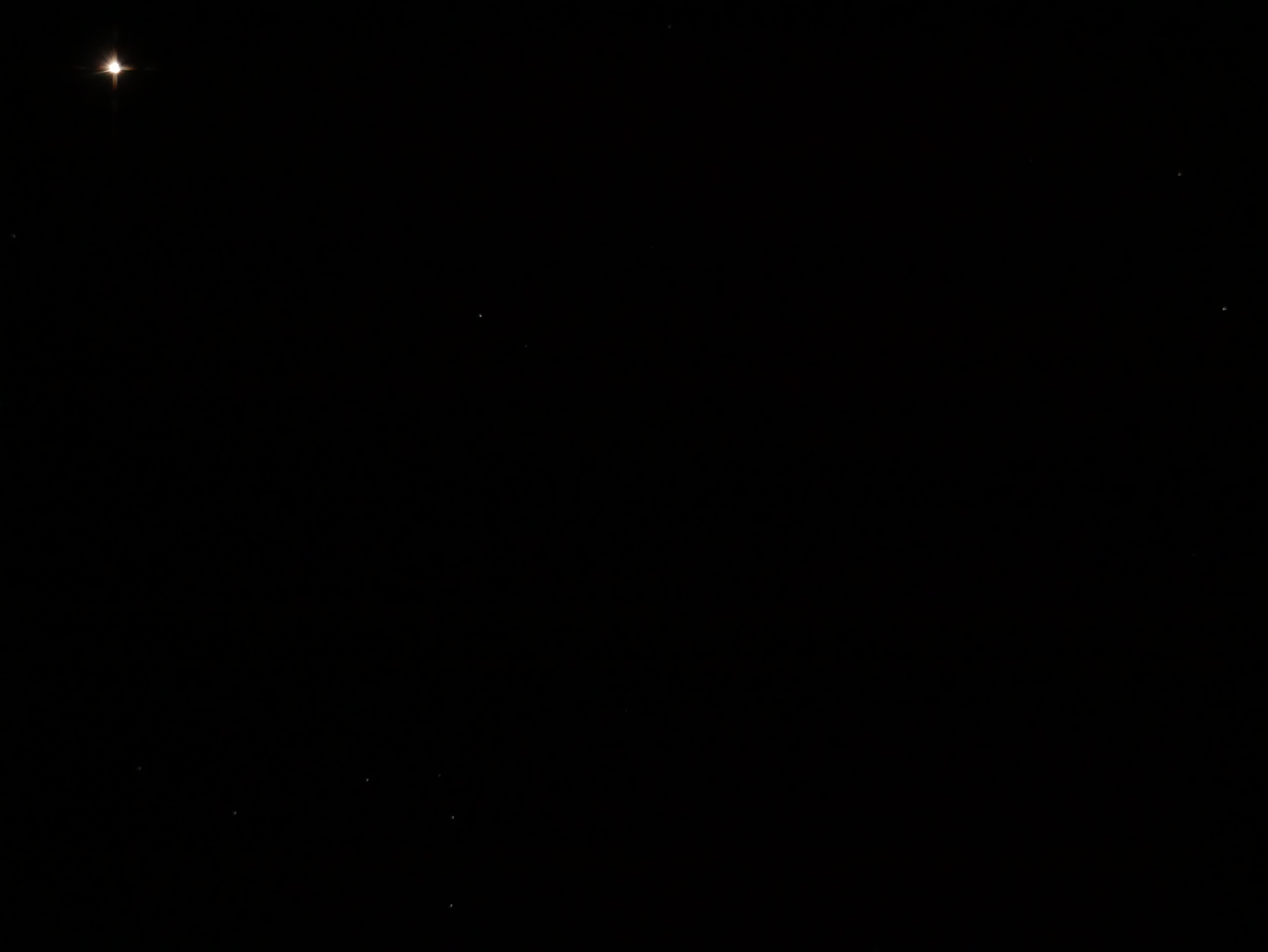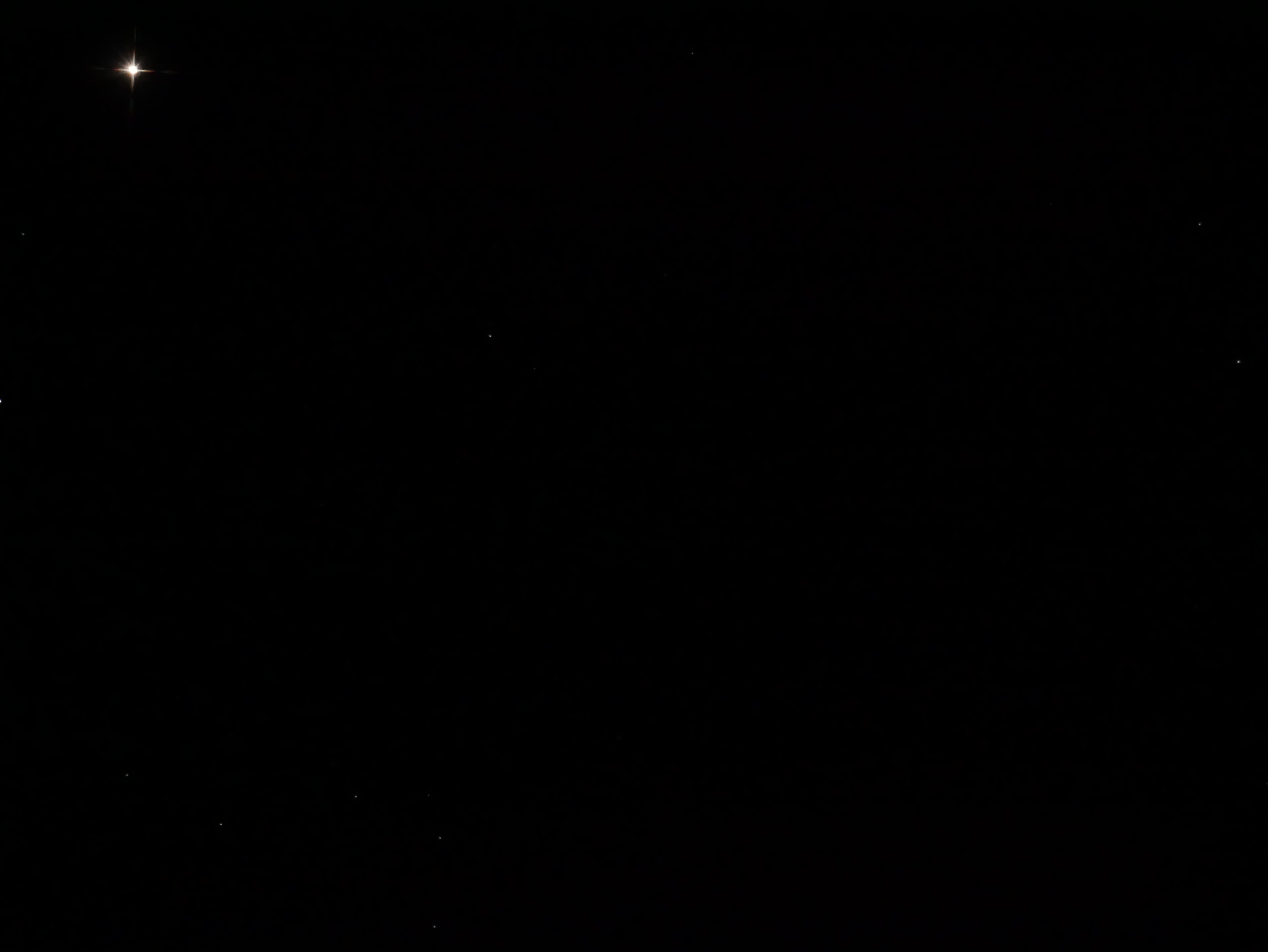 | Sterne am Bildrand werden kometenförmig abgebildet. Hinweis: Der verrauschte/pixelige Hintergrund hat nichts mit der Koma zu tun, sondern mit der starken Vergrößerung des Bildrandes | Hier ist deutlich zu erkennen, wie der Stern Arcturus kometenförmig verzogen wird. Das gezeigte Bild ist ein Ausschnitt des Originalbildes. Im Originalbild befindet sich der Stern in der Bildfeldecke weil dort die Koma ab stärkstenauftritt. | ||||
