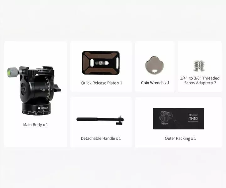 Der Seestar TH10-Stativkopf besteht aus einer robusten Vollmetallkonstruktion und ist mit den meisten auf dem Markt erhältlichen Stativen und Zubehörteilen kompatibel. Er wird mit einer Schnellwechselplatte geliefert, die sowohl 3/8"- als auch 1/4"-Schrauben unterstützt und eine einfache Einrichtung mit einer Vielzahl von Geräten ermöglicht.