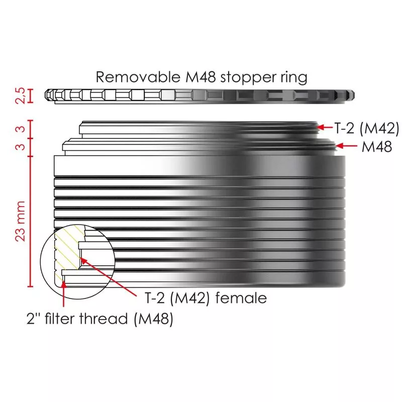 - Teleskopseitig mit 2" Außendurchmesser und 48mm Filtergewinde für 2" Filter
