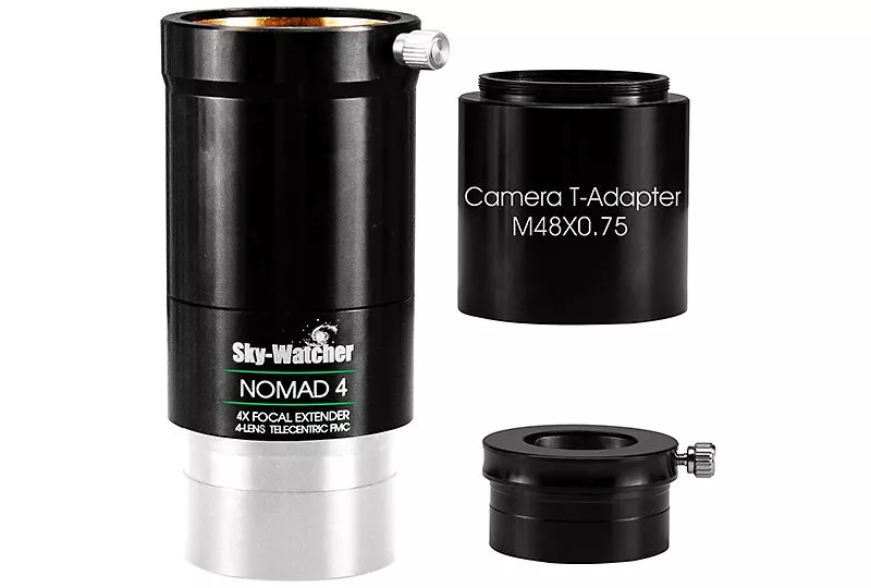 Der Sky-Watcher 2" Nomad-4 4-fach telezentrische Brennweitenverlängerer ist ein hochwertiges, optisches Zubehör mit einer Fülle von Verwendungsmöglichkeiten für die visuelle und fotografische Nutzung.