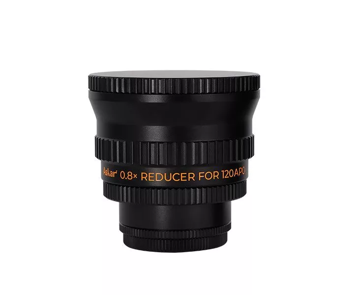 Der 0,8fach-Reducer verkürzt das Öffnungsverhältnis des Askar 120APOs auf f/5,6 und vergrößert und ebnet gleichzeitig das Bildfeld. Ein schnelleres Öffnungsverhältnis ermöglicht dem Teleskop ein breiteres Sichtfeld und kürzere Belichtungszeiten, so dass es sich für die Aufnahme großer Bereiche von Nebeln, Sternhaufen und schwachen, sich schnell bewegenden Himmelsobjekten eignet.