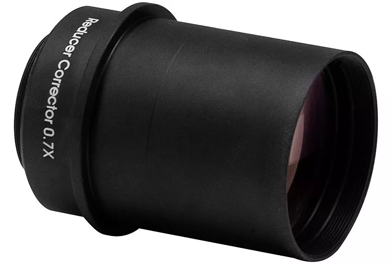 Optisch speziell abgestimmt für den Sky-Watcher Skymax-200DX Maksutov Cassegrain besteht der Focal Reducer / Flattener aus 2 Linsen und hat einen Reduktionsfaktor von 0,7-fach, so daß ein schnelles Teleskop mit einem Öffnungsverhältnis von f/7 entsteht. Der Reducer ist mit einem Standardgewinde M48 ausgestattet und hat eine Backfokus von 55mm für die Nutzung mit den Sky-Watcher M48 auf Canon EOS (Nr. 20237) und Nikon (Nr. 20238) Adapterringen. Der Reducer / Flattener produziert ein voll ausgeleuchtetes und korrigiertes Bildfeld von 30mm und ist damit für Bildformate bis APS-C geeignet, kann aber auch eingeschränkt an Vollformat genutzt werden.