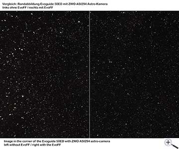 ♦ Rechts sehen Sie das Ergebnis mit EvoFF. Die Sterne sind über das gesamte Bildfeld scharf.