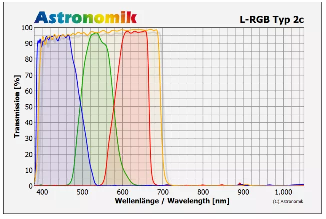 - Alle Astronomik L-RGB Typ 2c Filter haben IR- und UV-Blockung