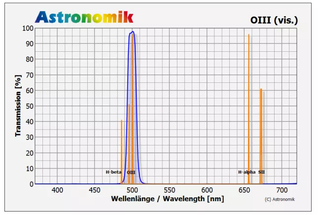 - Typische Transmission von 95% bei 496nm (OIII)